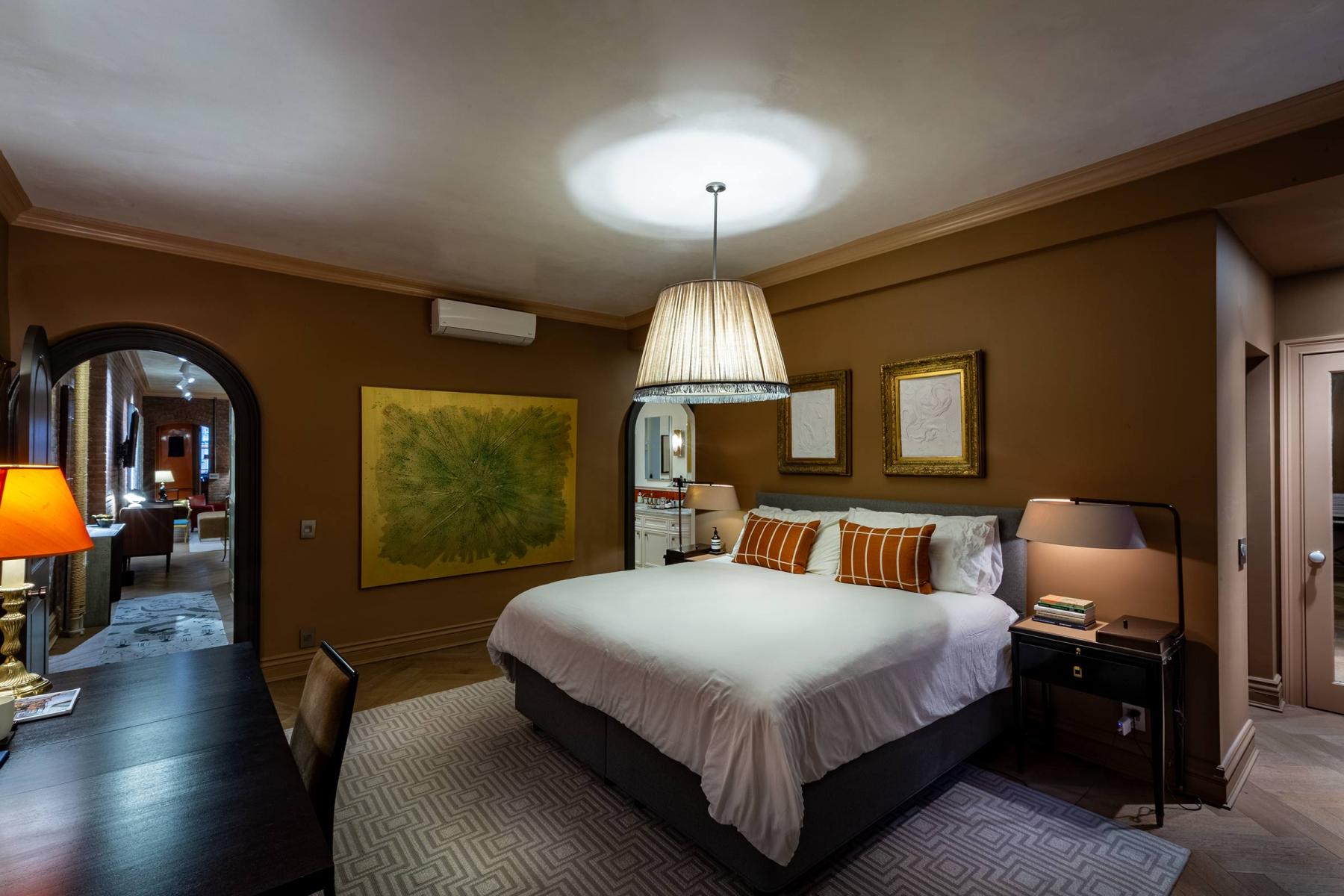 Bedroom. Interior design bedroom New York City apartment with arched hallway entrance. Private client.